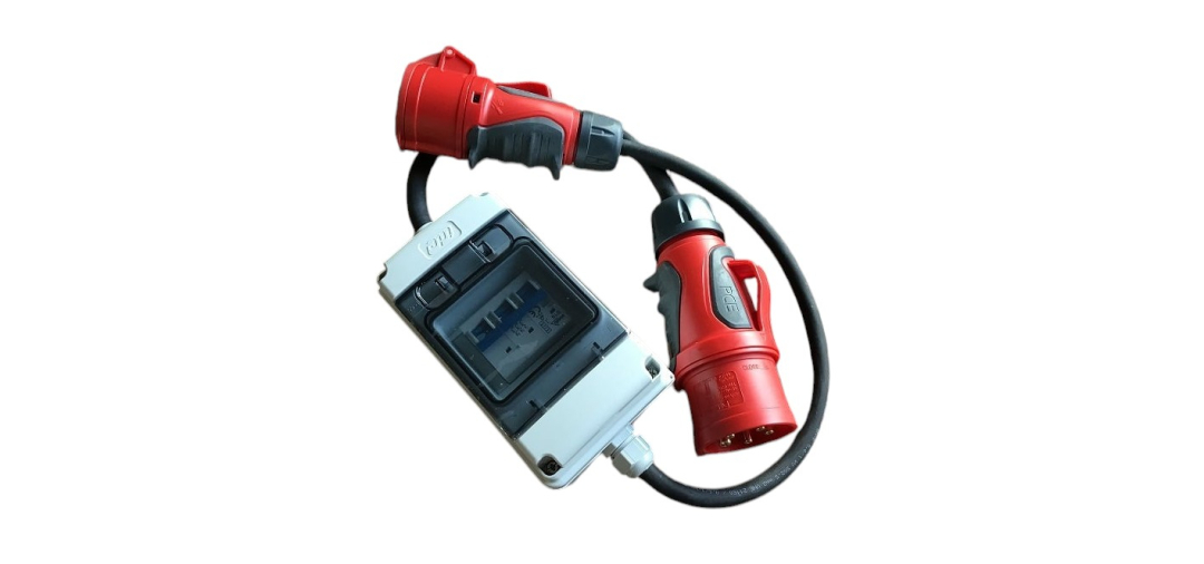 De stekker heeft een 5-polig 400V AC aansluiting, 3 fase beveiliging en voldoet aan de IP54 veiligheidsnorm.