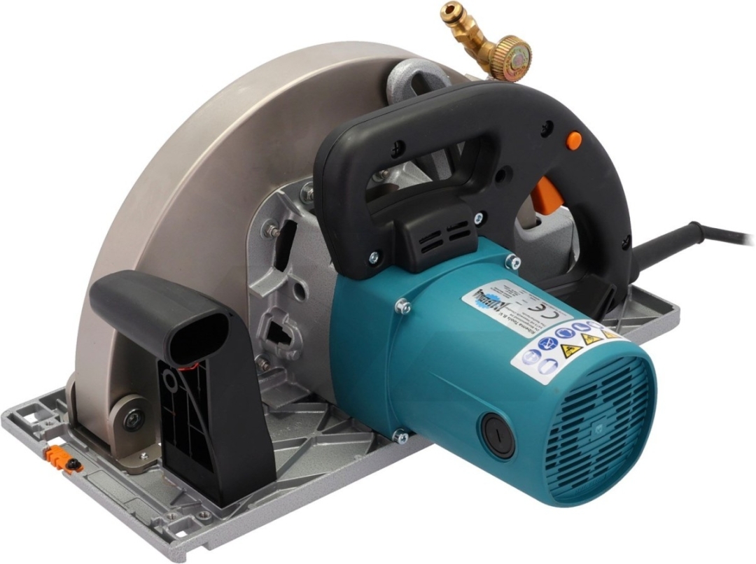 Dankzij de wateraansluiting kan deze zaag nat bediend worden, wat het verspreiden van stof beperkt.
