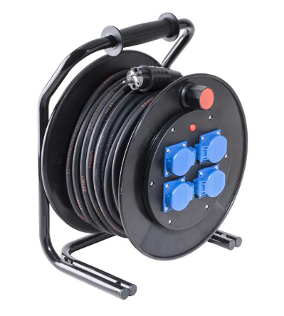 De haspel heeft 4 stopcontacten, werkt op 220 Volt en heeft een lengte van 40 meter.