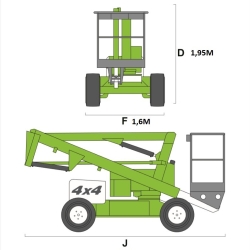 De reiktwijdte van 6,10 meter zorgt ervoor dat de hoogwerker over obstakels heen kan reiken. Met de vierwielaandrijving kan er eenvoudig op ruwe ondergronden zoals modder en/of zand gewerkt worden.