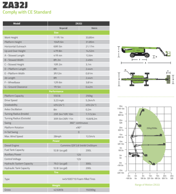 Door reikwijdte van 21.17 meter en een hefvermogen van 250 kg is dit een veilige en veelzijdige oplossing voor lastig bereikbare plekken.
