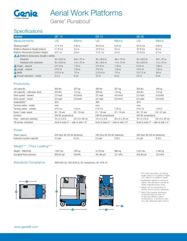 De Genie GR-12, ook wel de Genie Runabout GR-12, is een compacte, lichtgewicht masthoogwerker. Deze masthoogwerker, ook wel eenpersoonslift of eenpersoonshoogwerker genoemd, kent een werkhoogte van 5.45 m en werklast van 227 kg.