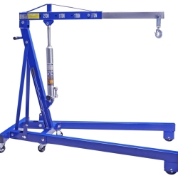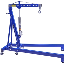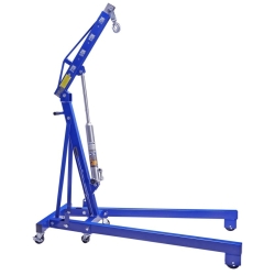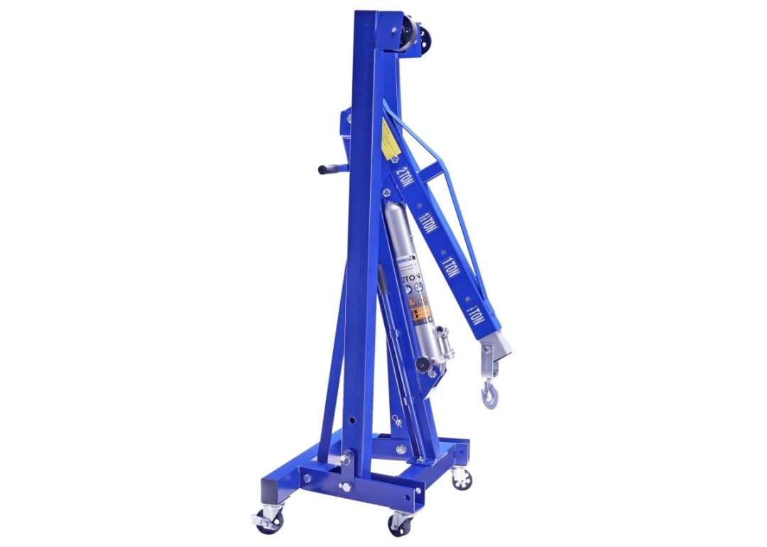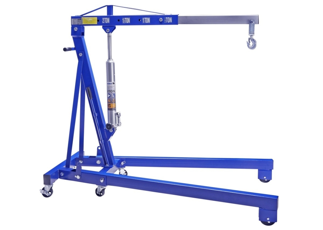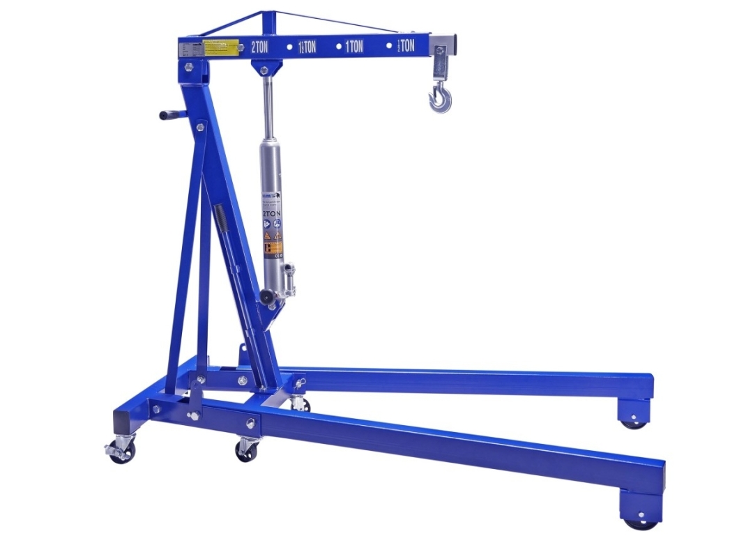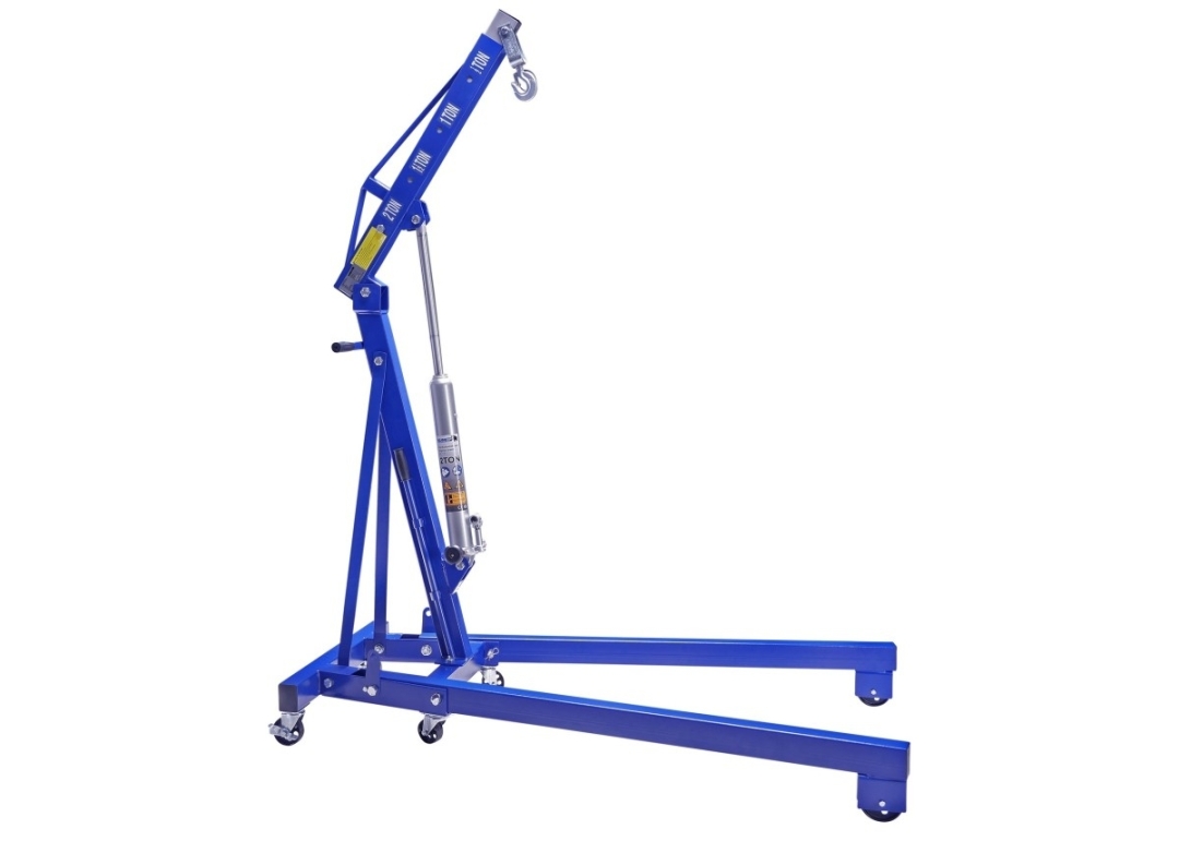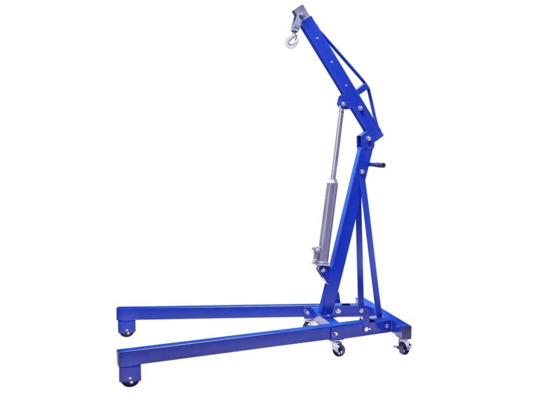 Deze professionele motortakel, ook wel werkplaatskraan genoemd, is geschikt voor het hijsen van een motorblok uit een auto of machine.