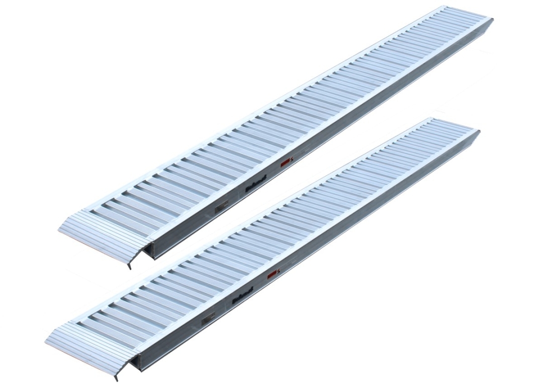 Deze aluminium oprijplatenset bestaat uit 2 rijplaten. Een oprijplaat is 23 cm breed.