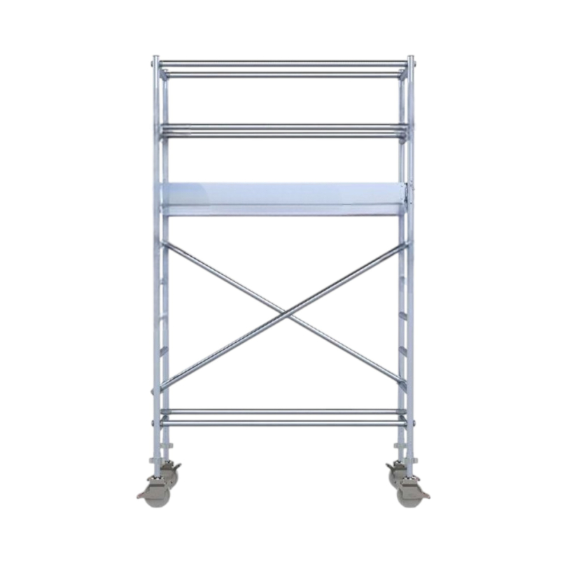Deze verrijdbare rolsteiger is geschikt voor zowel binnen- als buitenwerkzaamheden op hoogte. Al wordt een kamersteiger veelal binnenshuis gebruikt. Een rolsteiger is robuuster en breder dan een kamersteiger.