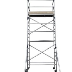 Deze verrijdbare rolsteiger is geschikt voor zowel binnen- als buitenwerkzaamheden op hoogte. Al wordt een kamersteiger veelal binnenshuis gebruikt. Een rolsteiger is robuuster en breder dan een kamersteiger.