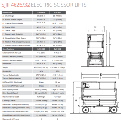 Deze Skyjack SJIII-4632 schaarhoogwerker is 100% elektrisch. Dankzij het uitschuifbordes kan het platform tot 3.08 meter verbreed worden.