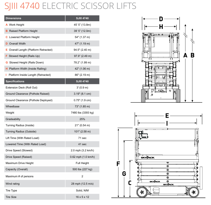 Deze Skyjack SJIII-4740 schaarhoogwerker is 100% elektrisch. Dankzij het uitschuifbordes kan het platform tot 3.08 meter verbreed worden. Hierdoor biedt de hoogwerker voldoende ruimte om met meerdere personen en gereedschap op hoogte te werken.