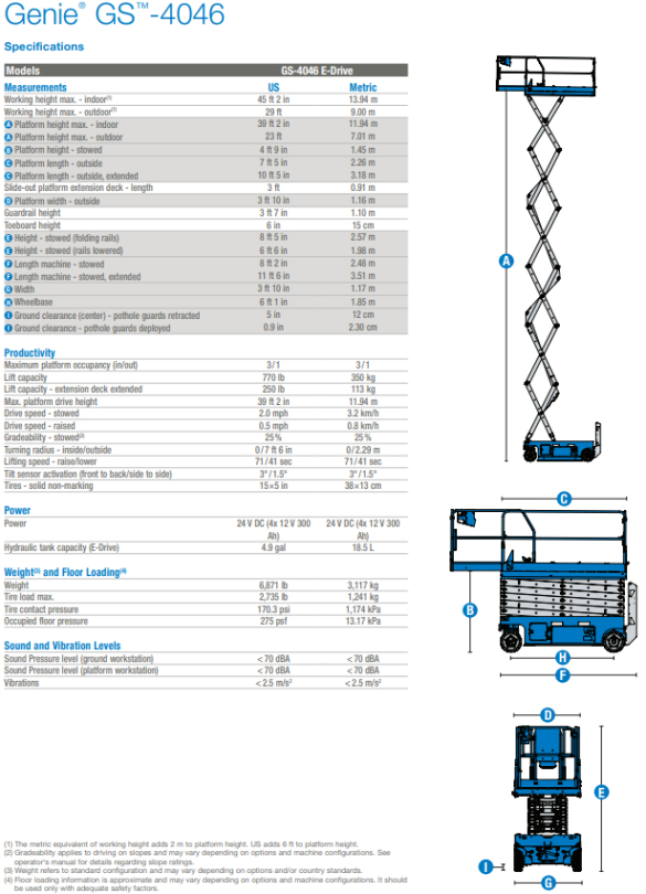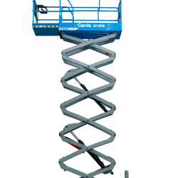 Deze Skyjack SJIII-4740 en Genie 4046E schaarhoogwerker zijn 100% elektrisch. Dankzij het uitschuifbordes kan het platform tot 3.08 meter verbreed worden.
