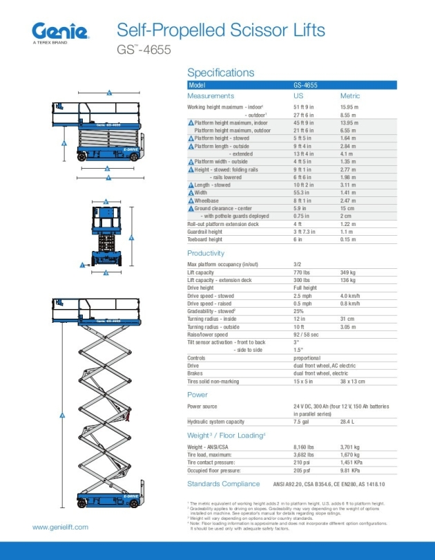 Deze Genie GS-4655 schaarhoogwerker is 100% elektrisch.
