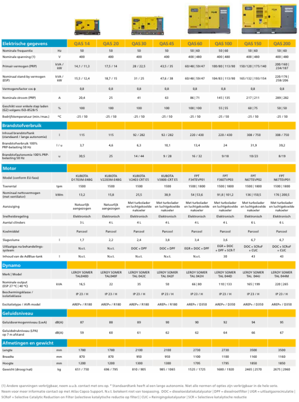 Deze professionele Atlas Copco QAS 60 heeft een vermogen van maximaal 60 kVA, oftewel 60.000 watt. Hiervan kan u 70% verbruiken. Dit staat tijdens het zuinige verbruik van het aggregaat aan zo’n 1,5 dag non-stop stroom.