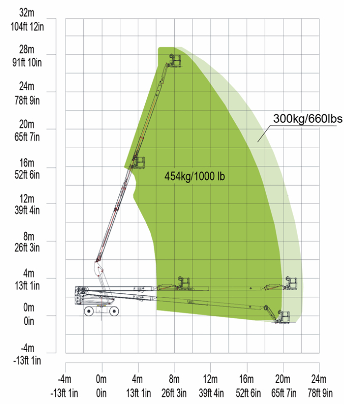 Op deze telescoop hoogwerker kan een XL-platform (4,00 × 0,91 m) worden gemonteerd.