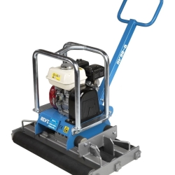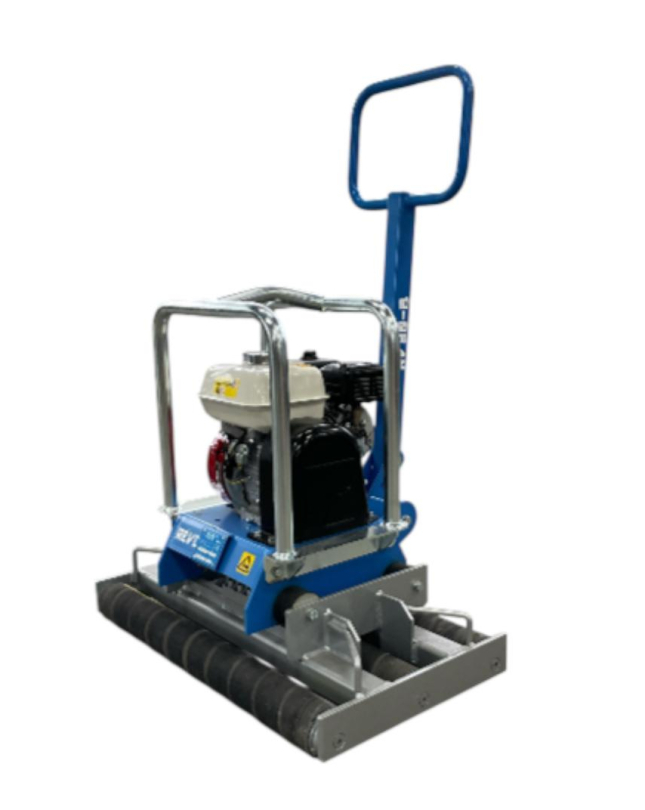 Deze trilplaat met rolonderstel is geschikt voor het aftrillen van tegels en kwetsbare bestratingmaterialen.