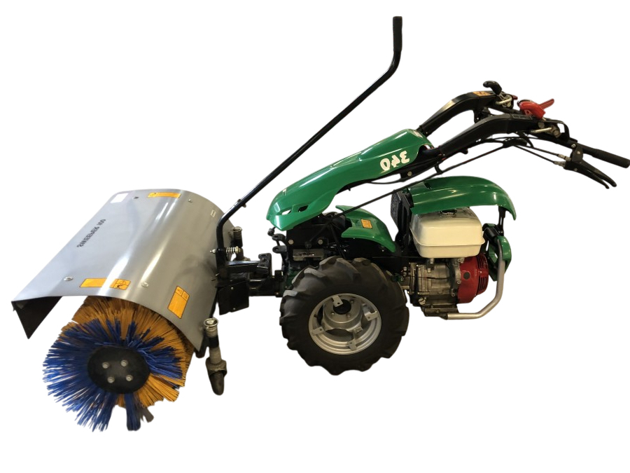 De veegmachine heeft een werkbreedte van 66 cm en werkt op benzine.