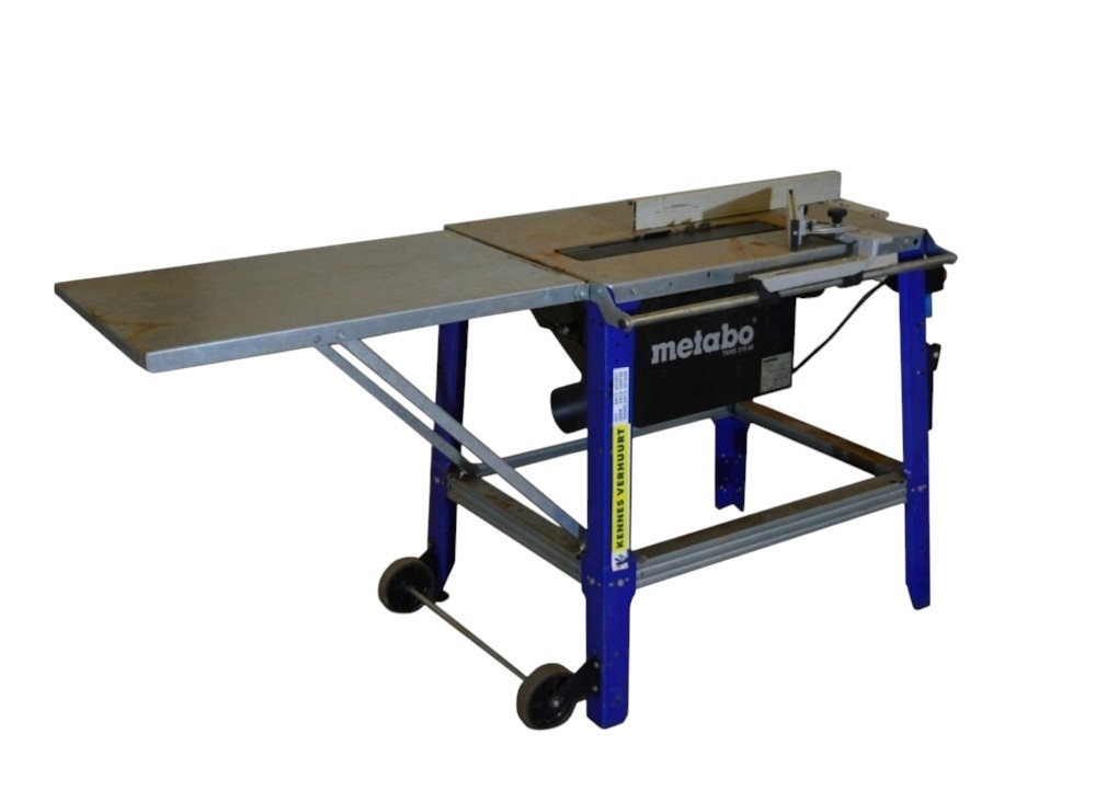 Deze professionele zaagtafel, ook wel tafelzaag genoemd, is geschikt voor het afkorten van planken of plaatmateriaal.